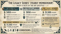 These membership packages are strictly limited to a total of: (9) per calendar year. Only (3) of each will be made available annually.